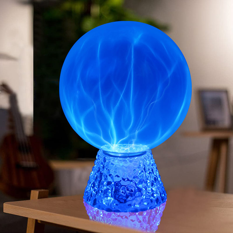 ບານ Plasma ແສງສະຫວ່າງສີຟ້າ 8 ນິ້ວທີ່ມີຖານໂປ່ງໃສ! ຂະໜາດໃຫຍ່ເພື່ອຄວາມມ່ວນ ແລະການໂຕ້ຕອບຫຼາຍຂຶ້ນ. ບານພລາສມາຂະໜາດ 8" ນີ້ເປັນເຄື່ອງຕົກແຕ່ງທີ່ດີສຳລັບຫ້ອງນອນ, ຫ້ອງຮັບແຂກ, ຫ້ອງການ ຫຼືບ່ອນອື່ນ! ມັນຈະສ້າງວິທະຍາສາດທີ່ເຢັນສະບາຍຄືກັບບັນຍາກາດ.