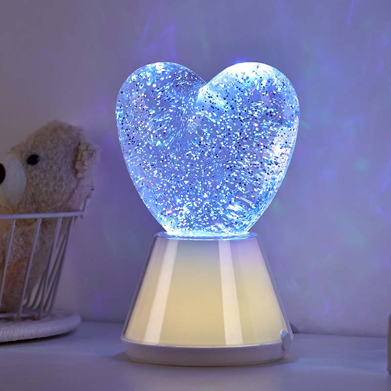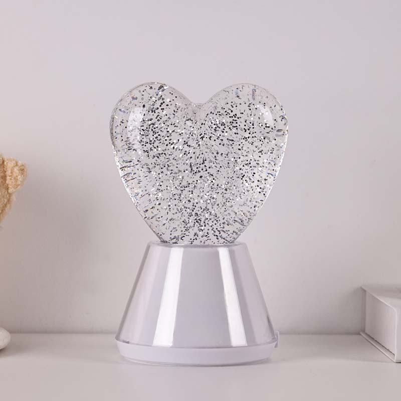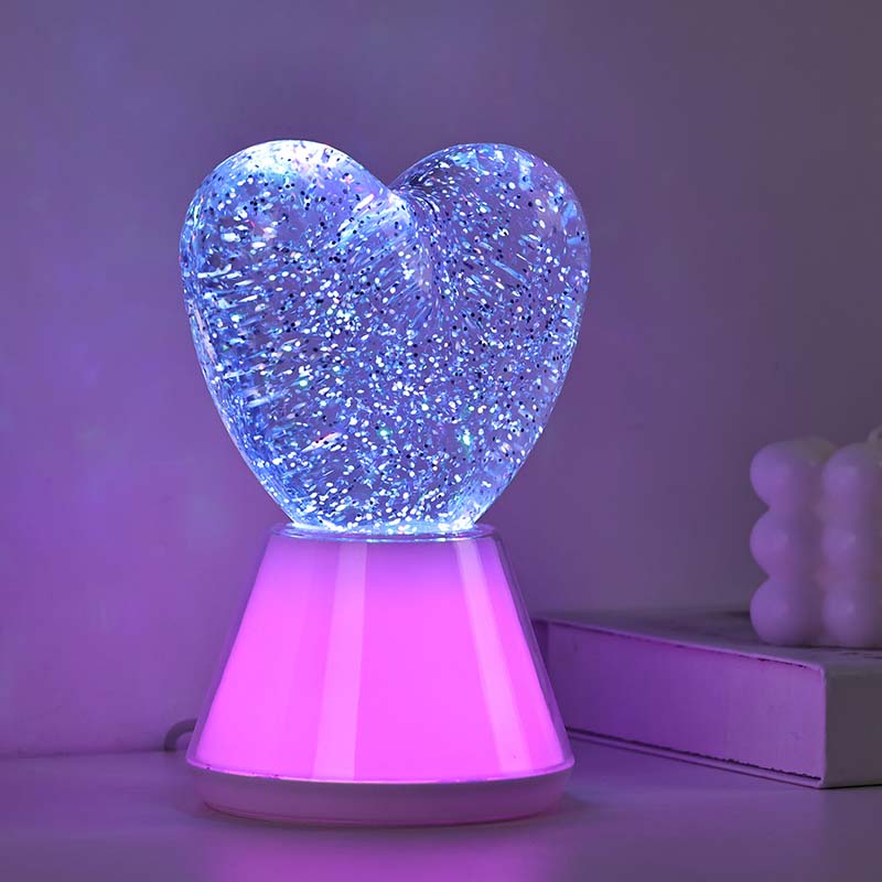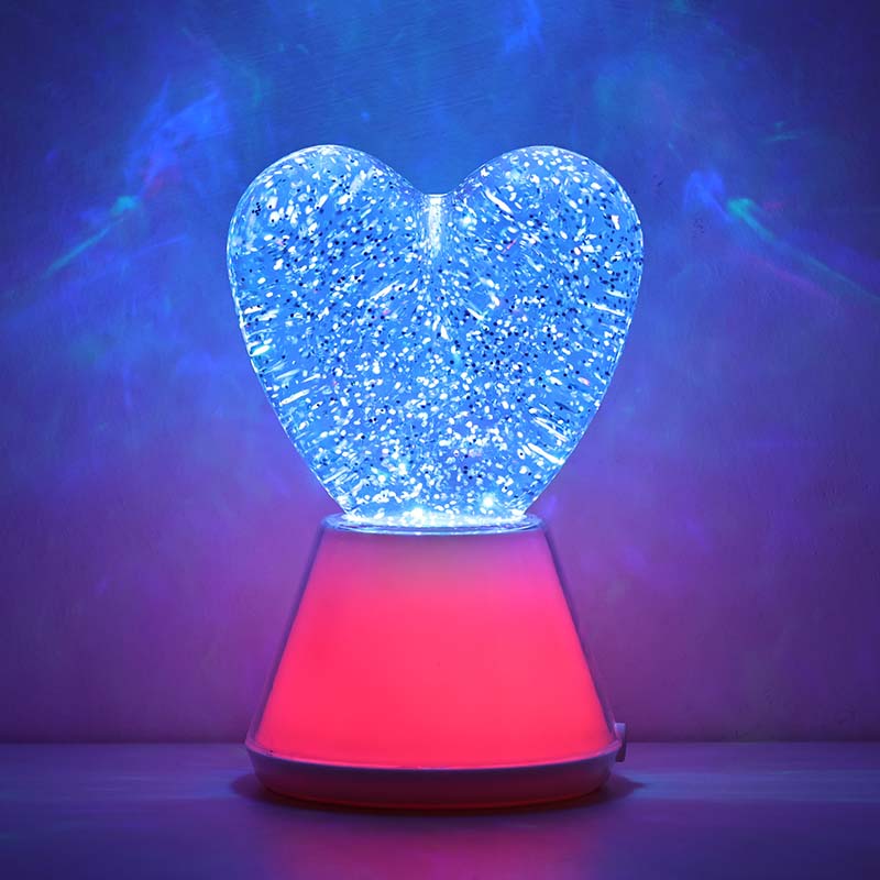 ການປ່ຽນສີຂອງ Liquid Glitter ແສງສະຫວ່າງໃນຕອນກາງຄືນທີ່ມີຮົ່ມຫົວໃຈ. ມີລູກແກ້ວອັນດີເລີດທີ່ເຕັມໄປດ້ວຍຂອງແຫຼວທີ່ລຶກລັບ, ໃນທີ່ sequins shimmering ລອຍ. ມະຫັດສະຈັນ, ແສງສີກາງຄືນຂອງແຫຼວທີ່ປ່ຽນເປັນເງົາທີ່ມີຮົ່ມຫົວໃຈຄືກັບການເຕັ້ນຢູ່ໃນໂລກມະຫັດສະຈັນ.