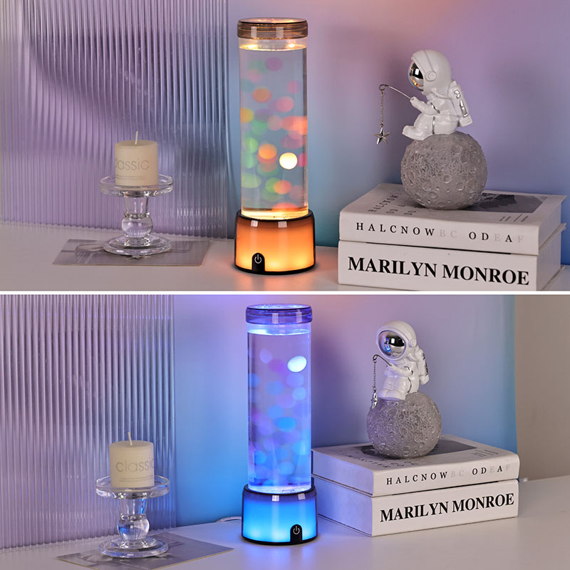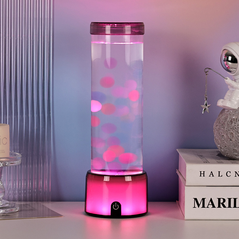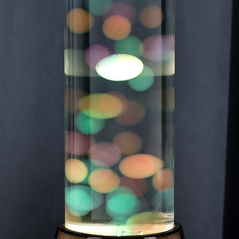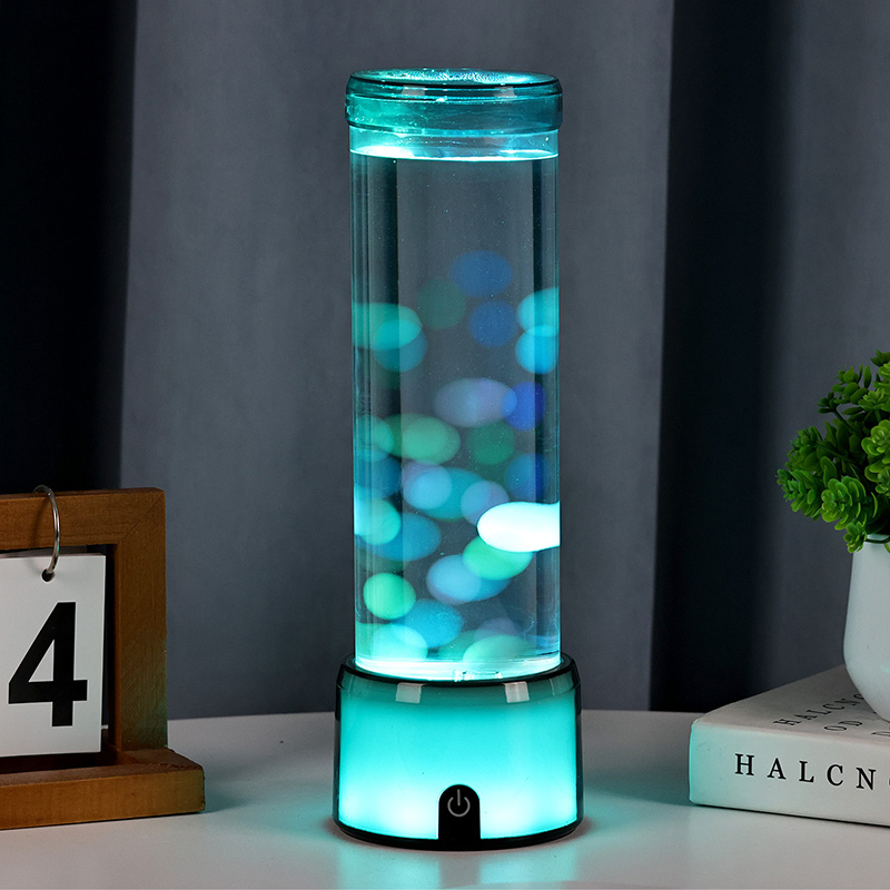 ຮູບຊົງກະບອກທີ່ສູງ, ສະຫງ່າງາມຂອງໂຄມໄຟເຮັດໃຫ້ມັນມີຄວາມທັນສະ ໄໝ, ລຽບງ່າຍ, ເສີມສ້າງຮູບແບບພາຍໃນຕ່າງໆ. ຮ່າງກາຍທີ່ໂປ່ງໃສຂອງມັນເຮັດໃຫ້ການເບິ່ງເຫັນຢ່າງເຕັມທີ່ຂອງອົງປະກອບພາຍໃນ, ລວມທັງ jellyfish ລອຍແລະການສະທ້ອນແສງສະຫວ່າງ shimmering. ທາດແຫຼວພາຍໃນໄດ້ຖືກສ້າງຂື້ນໂດຍສະເພາະເພື່ອຈໍາລອງການໄຫຼຂອງນ້ໍາ, ເສີມຂະຫຍາຍຄວາມເປັນຈິງຂອງການເຄື່ອນໄຫວລອຍ. ໃນຂະນະທີ່ໄຟ LED ປ່ຽນສີ, ວຸ້ນປາປະກົດວ່າມີຊີວິດຊີວາ, ເພີ່ມຄວາມເລິກແລະການເຄື່ອນໄຫວໃຫ້ກັບ scene.