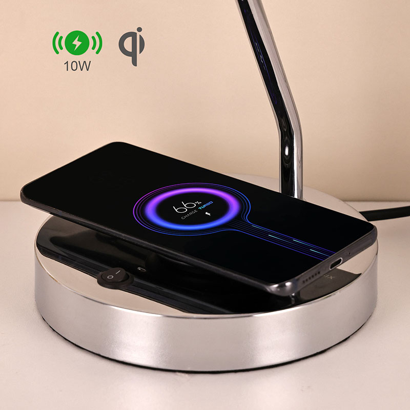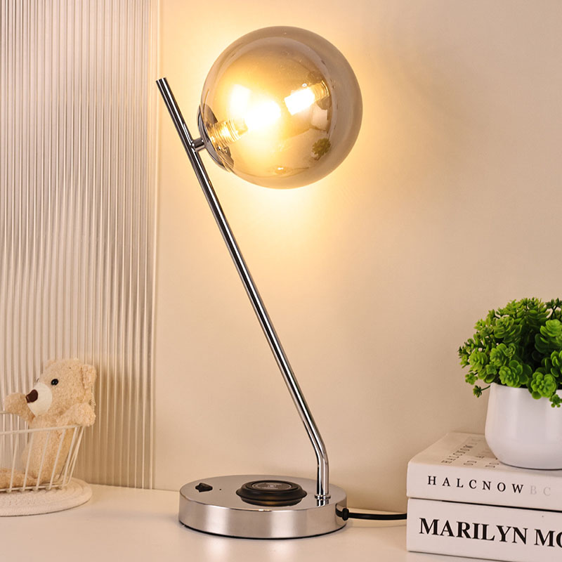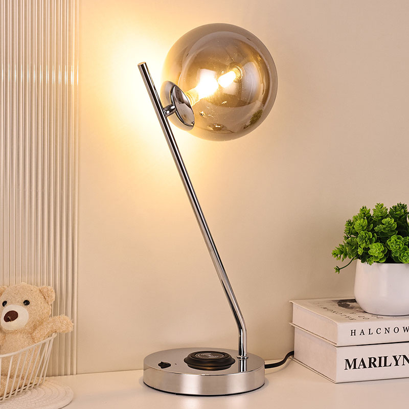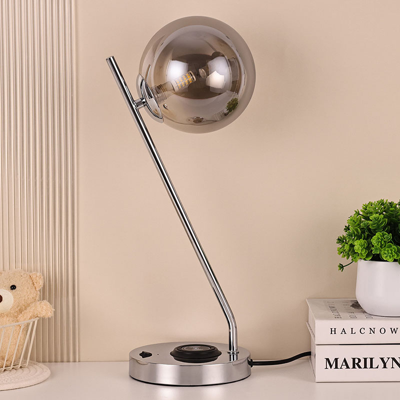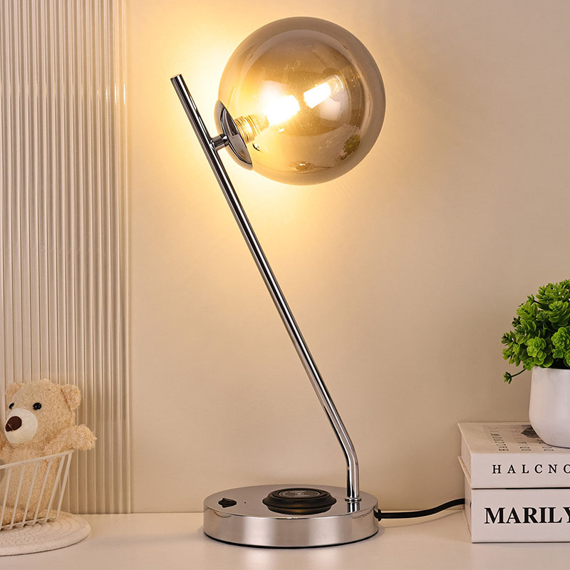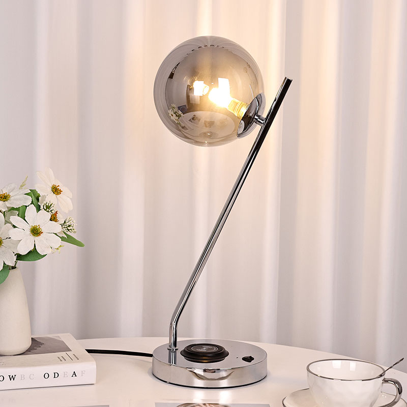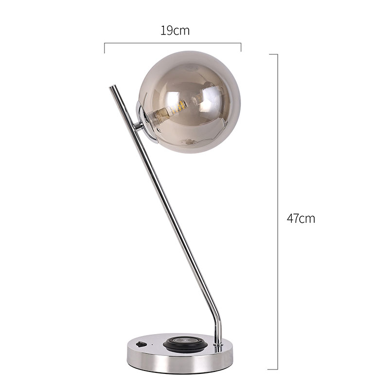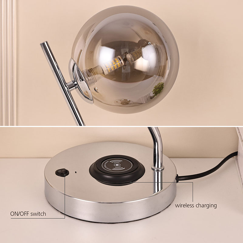 ມີຟັງຊັນການສາກໄຟໄຮ້ສາຍ 10W, ປຸ່ມເປີດ/ປິດຢູ່ເທິງຖານໂຄມໄຟຕັ້ງໂຕະບານແກ້ວສີເຂັ້ມທີ່ມີເຄື່ອງສາກໄຮ້ສາຍທີ່ປະສົມປະສານກັບຝາແກ້ວ, ໄຟ LED ສີອົບອຸ່ນ, ແລະຖານສາກໄຟໂທລະສັບມືຖືໄຮ້ສາຍໂລຫະ, ຖືກອອກແບບເພື່ອຈຸດປະສົງນີ້. ມັນປະສົມປະສານຢ່າງສົມບູນແບບເຕັກໂນໂລຢີທີ່ທັນສະໄຫມກັບການອອກແບບທີ່ອົບອຸ່ນ, ເອົາຄວາມສະດວກສະບາຍແລະຄວາມສະດວກສະບາຍທີ່ບໍ່ເຄີຍມີມາກ່ອນ