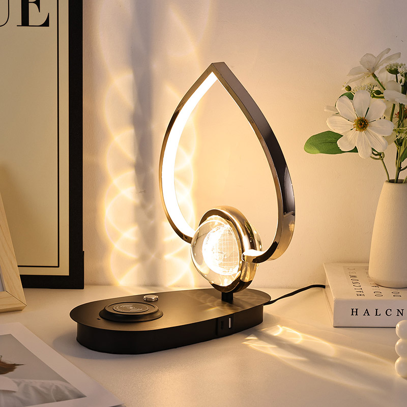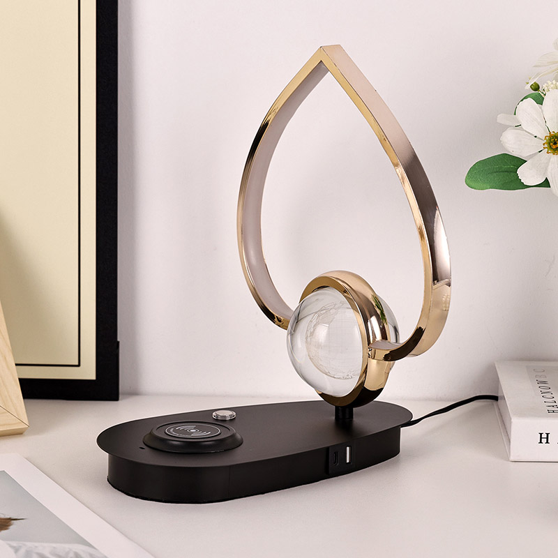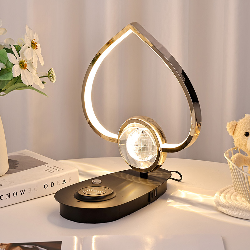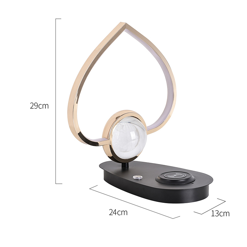 ໂຄມໄຟໂຕະສາກໄຟ LED Earth Wireless Charger ທີ່ມີຮົ່ມຫົວໃຈມີເຄື່ອງສາກໄຮ້ສາຍໂທລະສັບ ແລະສາຍສາກ USB