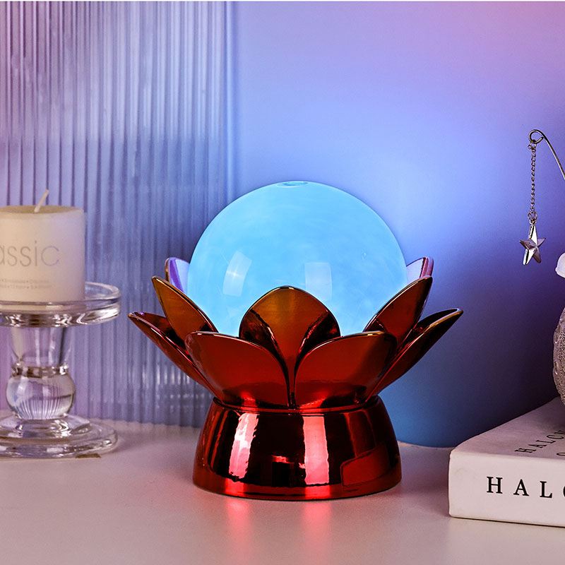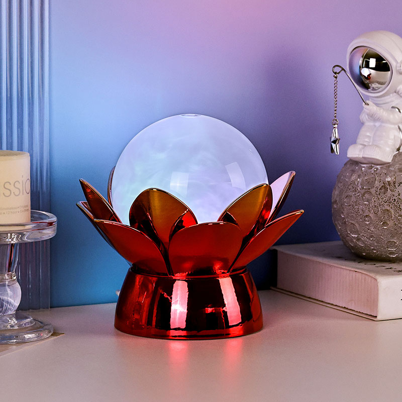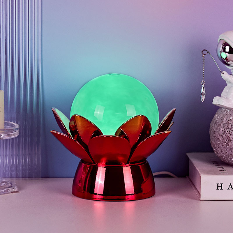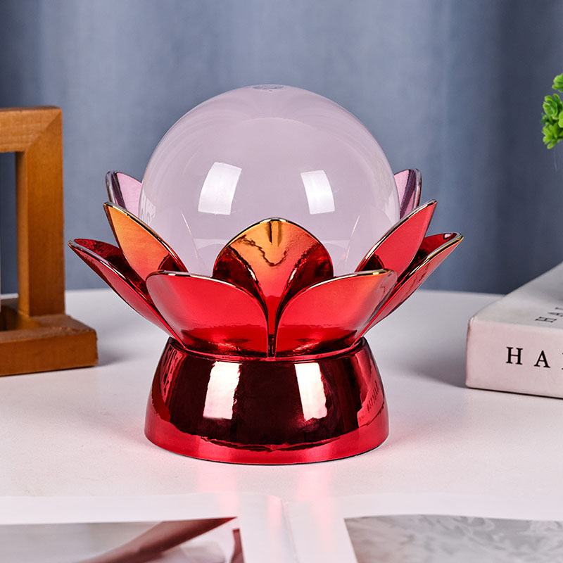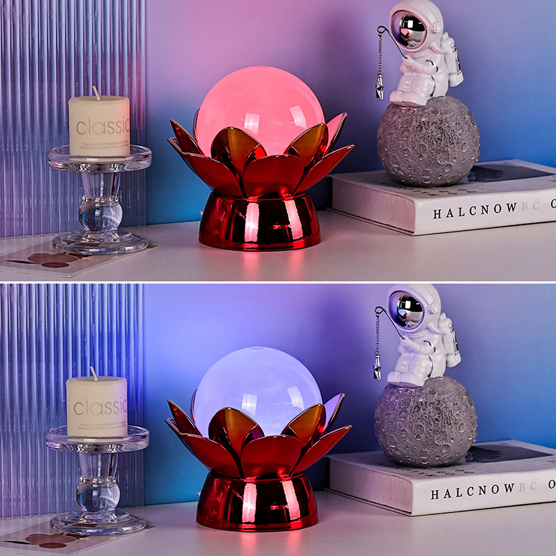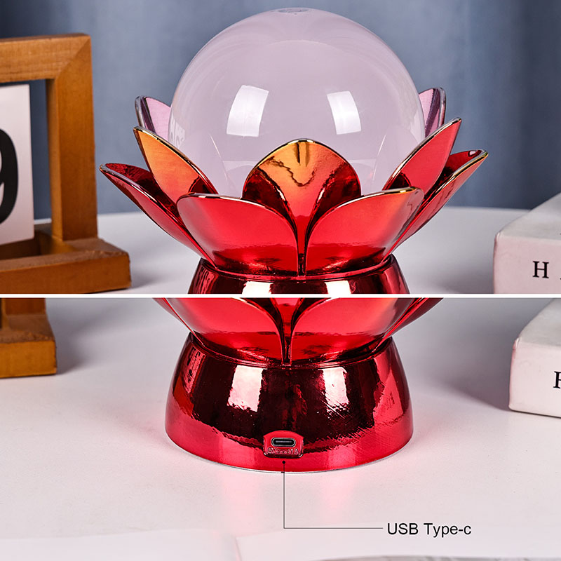 ແສງສະຫວ່າງກາງຄືນ Lotus Cloud Globe ທີ່ມີສະເໜ່ - ການປະສົມປະສານທີ່ໜ້າປະທັບໃຈຂອງການອອກແບບທີ່ສ້າງແຮງບັນດານໃຈຈາກທຳມະຊາດ, ບັນຍາກາດທີ່ຜ່ອນຄາຍ ແລະ ເທັກໂນໂລຢີທີ່ທັນສະໄໝ. ໂຄມໄຟຕົກແຕ່ງທີ່ສະຫງ່າງາມນີ້ປະກອບດ້ວຍແກ້ວແກ້ວທີ່ໂປ່ງໃສທີ່ເຕັມໄປດ້ວຍຂອງແຫຼວພິເສດທີ່ຈໍາລອງຟັງເມກທີ່ລອຍມາ, ສ້າງຄວາມງຽບສະຫງົບ, ຜົນກະທົບທີ່ບໍ່ມີຊີວິດຈິງໃນຂະນະທີ່ມັນຄ່ອຍໆລອຍແລະໄຫຼ. ແຮງບັນດານໃຈຈາກດອກກຸຫຼາບສັກສິດ, ແສງສະຫວ່າງໃນຕອນກາງຄືນນີ້ຢູ່ເທິງຖານໂລຫະທີ່ເຮັດດ້ວຍຫັດຖະກໍາທີ່ສວຍງາມທີ່ມີຮູບຮ່າງຄ້າຍຄືກີບດອກດອກກຸຫຼາບ, ເປັນສັນຍາລັກຂອງຄວາມບໍລິສຸດ, ຄວາມສະຫງົບສຸກ, ແລະການຕື່ນຕົວທາງວິນຍານ.