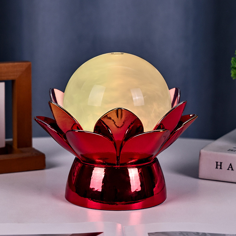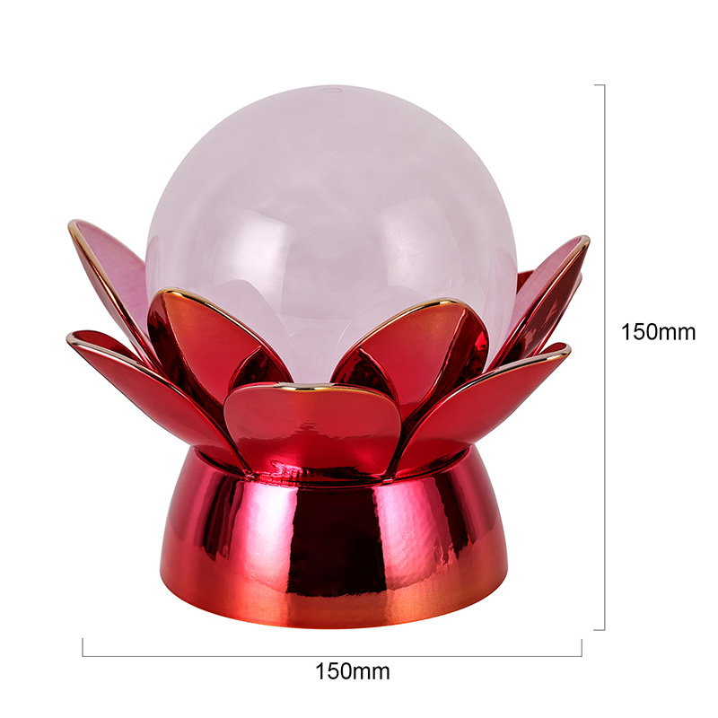 ຫັດຖະກໍາຈາກວັດສະດຸທີ່ມີຄຸນນະພາບສູງ, ພື້ນຖານແມ່ນເຮັດດ້ວຍໂລຫະຂັດດ້ວຍສີທອງແດງທີ່ໂດດເດັ່ນທີ່ສະທ້ອນແສງສະຫວ່າງຢ່າງສວຍງາມ, ເພີ່ມຄວາມເລິກແລະຄວາມອຸດົມສົມບູນໃຫ້ກັບຮູບລັກສະນະຂອງມັນ. ການອອກແບບ lotus ບໍ່ພຽງແຕ່ເຮັດຫນ້າທີ່ເປັນຈຸດປະສານງານກ່ຽວກັບຄວາມງາມເທົ່ານັ້ນ, ແຕ່ຍັງມີຄວາມ ໝາຍ ສັນຍາລັກທີ່ຮາກຖານຢູ່ໃນປະເພນີຕາເວັນອອກ - ເປັນຕົວແທນຂອງຄວາມສະຫວ່າງ, ຄວາມຢືດຢຸ່ນ, ແລະຄວາມກົມກຽວ. ພື້ນຜິວສະທ້ອນແສງຊ່ວຍເພີ່ມຜົນກະທົບທາງສາຍຕາ, ເຮັດໃຫ້ໂຄມໄຟສ່ອງສະຫວ່າງເຖິງແມ່ນວ່າຢູ່ໃນສະພາບແວດລ້ອມທີ່ມີແສງສະຫວ່າງຫນ້ອຍ.