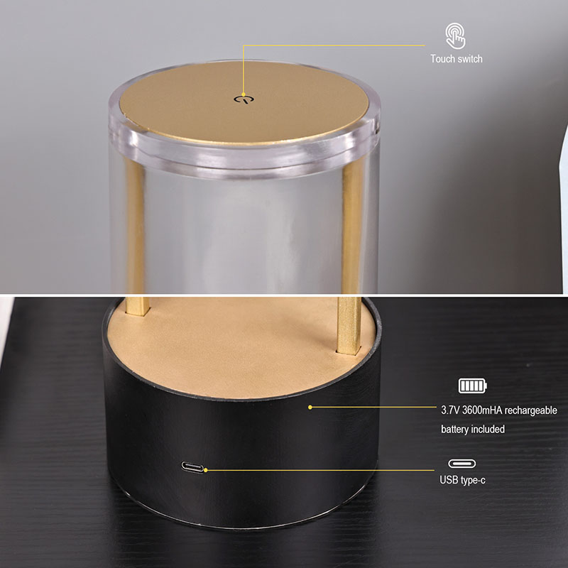 ດ້ານເທິງຂອງໂຄມໄຟຕາຕະລາງຂະໜາດນ້ອຍແບບໂຄມໄຟແມ່ນເປັນປຸ່ມສະຫຼັບແສງທີ່ລະອຽດອ່ອນສຳຜັດ, ມີຫົວສາກທີ່ສາມາດສາກໄຟໄດ້ແບບ Type-c ຢູ່ດ້ານລຸ່ມ. ດ້ານເທິງແມ່ນປະກອບດ້ວຍການປົກຫຸ້ມຂອງ acrylic ໂປ່ງໃສ, ແລະດ້ານລຸ່ມແມ່ນພື້ນຖານໂລຫະ. ໂຄງສ້າງວົງມົນໂດຍລວມອະນຸຍາດໃຫ້ເຮັດໃຫ້ມີແສງເຄື່ອນທີ່