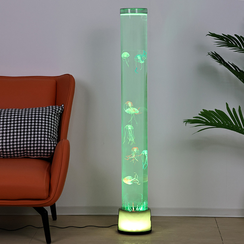 ມັນສາມາດໄດ້ຮັບການປັບຕາມເວລາຫຼືດ້ວຍຕົນເອງ, ການສະແດງຜົນ gradient ຂອງສີຕ່າງໆເຊັ່ນ: ສີມ່ວງ, ສີຟ້າ, ສີຂຽວ, ສີບົວ, ແລະສີເຫຼືອງ, ສ້າງປະສົບການສາຍຕາຝັນ. ການອອກແບບແຫຼ່ງແສງສະຫວ່າງທາງລຸ່ມເປັນເອກະລັກ, ມັນບໍ່ພຽງແຕ່ໃຫ້ແສງສະຫວ່າງແຕ່ຍັງເພີ່ມຄວາມຮູ້ສຶກໂດຍລວມຂອງແສງແລະເງົາ, ເຮັດໃຫ້ silhouette ຂອງ jellyfish ມີລັກສະນະເຄື່ອນໄຫວແລະ ethereal.