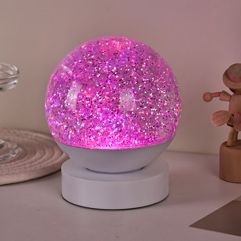 42 x 28.5 x 17.5 ຊມLed RGB Glitter Decor Lamp ເປັນຂອງຂວັນສ້າງສັນທີ່ຖືກອອກແບບໂດຍສະເພາະສໍາລັບຫ້ອງ, ຫ້ອງນອນຂອງເດັກນ້ອຍ, ຫຼືການຕົກແຕ່ງງານບຸນ, ປະສົມປະສານເຕັກໂນໂລຢີແລະຄວາມງາມຢ່າງສົມບູນ. ບານແມ່ນເຕັມໄປດ້ວຍຂອງແຫຼວທີ່ໂປ່ງໃສແລະອະນຸພາກ glitter ນ້ອຍໆນັບບໍ່ຖ້ວນ. ເມື່ອແສງເປີດ, ແຫຼວໄຫຼຊ້າໆ, ແລະອະນຸພາກ glitter ເຕັ້ນຕາມ, ຄືກັບວ່າຈັບ galaxy ທີ່ສ່ອງແສງຢູ່ໃນຝາມືຂອງທ່ານ. ດ້ວຍເອັບເຟັກໄຟ LED RGB, ສີອັດຕະໂນມັດຈະຜ່ານເຈັດສີ - ຕັ້ງແຕ່ສີບົວອ່ອນແລະສີມ່ວງກັບສີຟ້າແລະສີຂຽວທີ່ສົດຊື່ນ, ແລະຫຼັງຈາກນັ້ນເປັນສີສົ້ມແລະສີແດງທີ່ອົບອຸ່ນ - ແຕ່ລະສີເຮັດໃຫ້ເກີດປະສົບການທາງດ້ານຈິດໃຈທີ່ແຕກຕ່າງກັນແລະສ້າງບັນຍາກາດທີ່ຄ້າຍຄືກັບຄວາມຝັນ.
