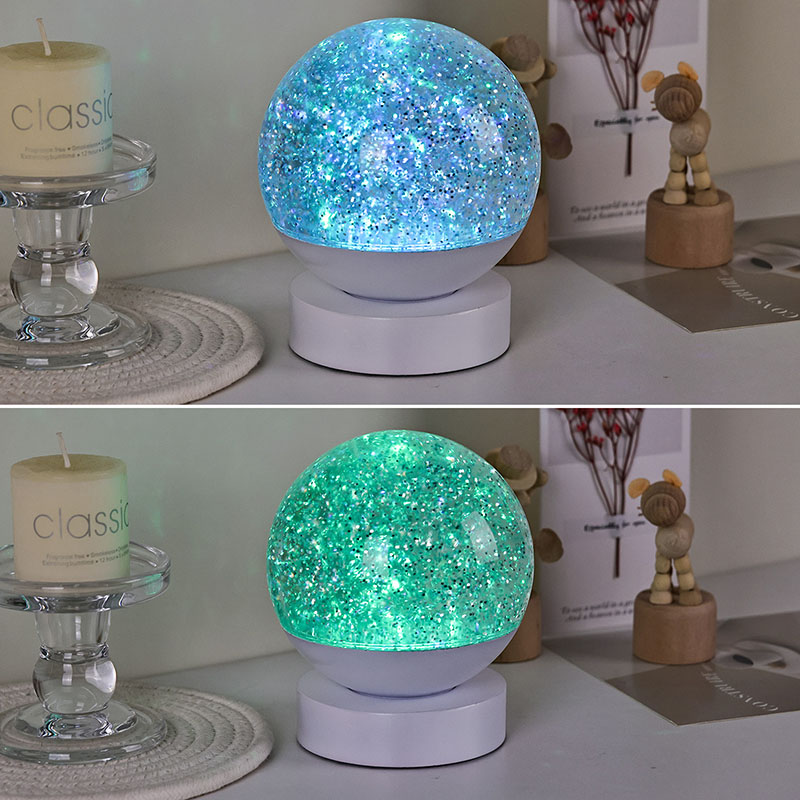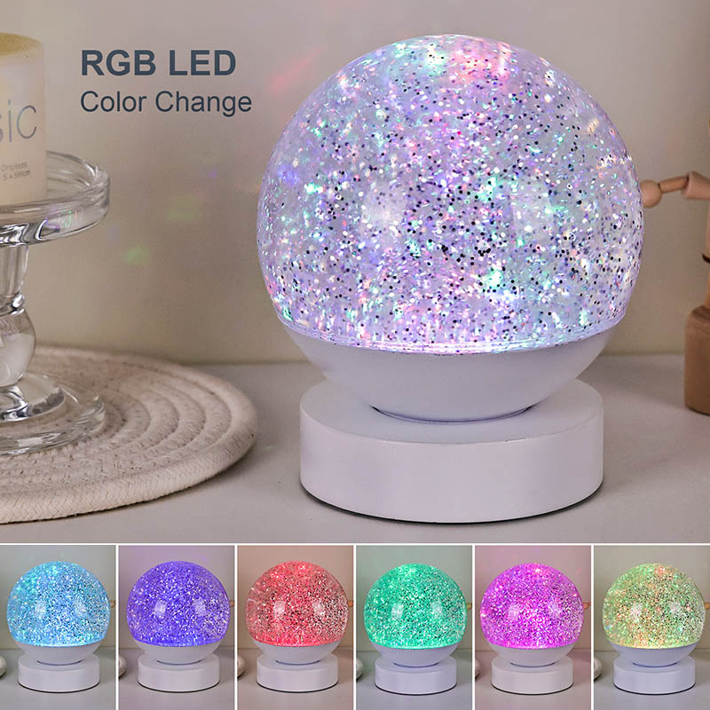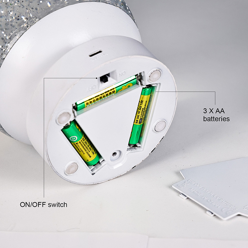 Led RGB Glitter Decor Lamp ແມ່ນຜະລິດຈາກວັດສະດຸ acrylic ຄຸນນະພາບສູງ, ປະກອບດ້ວຍຮູບຊົງທີ່ມີຄວາມໂປ່ງໃສທີ່ມີການຖ່າຍທອດແສງສະຫວ່າງທີ່ດີເລີດ. ພື້ນຖານແມ່ນຫັດຖະກໍາຈາກພາດສະຕິກ ABS ທີ່ເປັນມິດກັບສິ່ງແວດລ້ອມ, ຮັບປະກັນຄວາມຫມັ້ນຄົງ, ທົນທານ, ແລະຄວາມປອດໄພໂດຍບໍ່ມີສານພິດ. ມັນດໍາເນີນການຢູ່ໃນສາມແບດເຕີລີ່ AAA (ແບດເຕີລີ່ທີ່ຂາຍແຍກຕ່າງຫາກ), ການກໍາຈັດຄວາມຕ້ອງການຂອງປ່ຽງໄຟຟ້າແລະສະຫນອງການນໍາໃຊ້ທີ່ສະດວກສະບາຍ. ເຫມາະສໍາລັບການຈັດວາງຢູ່ຂ້າງຕຽງ, ໂຕະ, ຫຼືຢູ່ໃນແຈຂອງຫຼິ້ນຂອງເດັກນ້ອຍ. ດ້ວຍປຸ່ມສໍາຜັດທີ່ງ່າຍດາຍ, ແສງສະຫວ່າງສາມາດເປີດຫຼືປິດໄດ້ງ່າຍ, ເຮັດໃຫ້ມັນເປັນມິດກັບຜູ້ໃຊ້ເຖິງແມ່ນວ່າເດັກນ້ອຍສາມາດເຮັດວຽກໄດ້ຢ່າງເປັນອິດສະຫຼະ.