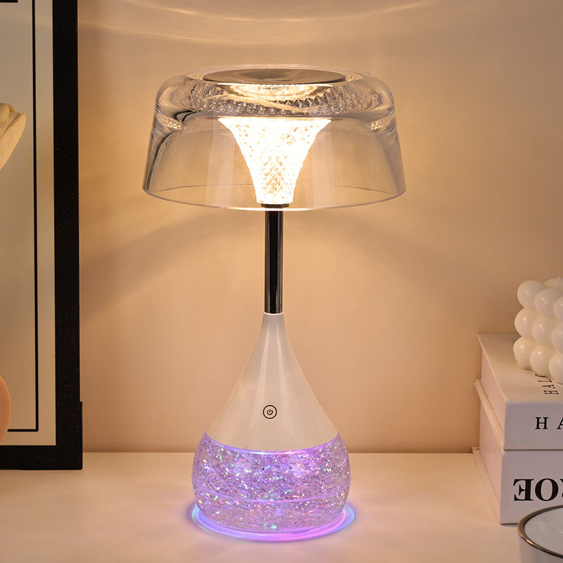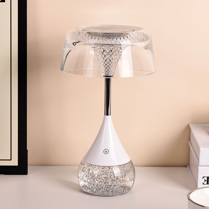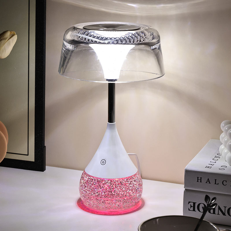 2. ຂອງແຫຼວແລະ glitter: ພື້ນຖານແມ່ນເຕັມໄປດ້ວຍຂອງແຫຼວແລະ glitter ພາຍໃນ. ເມື່ອໂຄມໄຟຕັ້ງໂຕະເປີດຢູ່, ແສງຈະສ່ອງຜ່ານແກ້ວໃສ່ຂອງແຫຼວ ແລະ ເງົາ, ສ້າງຜົນກະທົບທີ່ກະພິບ ແລະ ໄຫຼ, ເພີ່ມຄວາມສົນໃຈທາງສາຍຕາ.