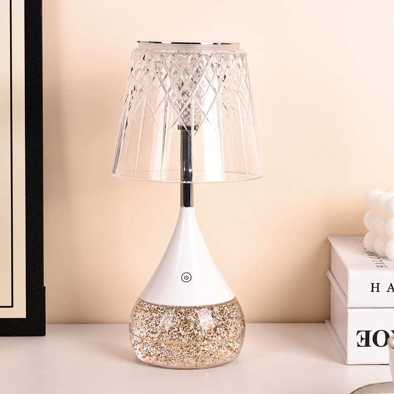 2. ຂອງແຫຼວແລະ glitter: ພື້ນຖານແມ່ນເຕັມໄປດ້ວຍຂອງແຫຼວແລະ glitter ພາຍໃນ. ເມື່ອໂຄມໄຟຕັ້ງໂຕະເປີດຢູ່, ແສງຈະສ່ອງຜ່ານແກ້ວໃສ່ຂອງແຫຼວ ແລະ ເງົາ, ສ້າງຜົນກະທົບທີ່ກະພິບ ແລະ ໄຫຼ, ເພີ່ມຄວາມສົນໃຈທາງສາຍຕາ.
