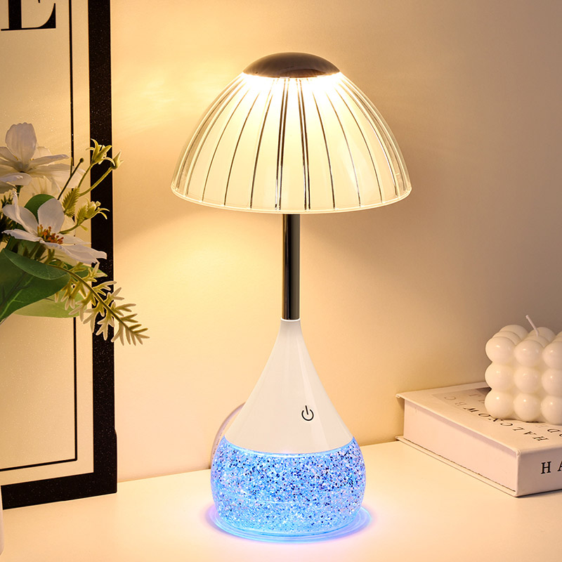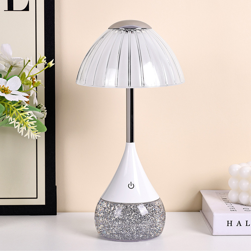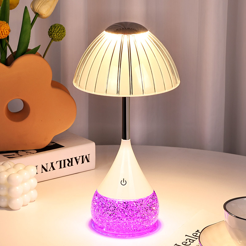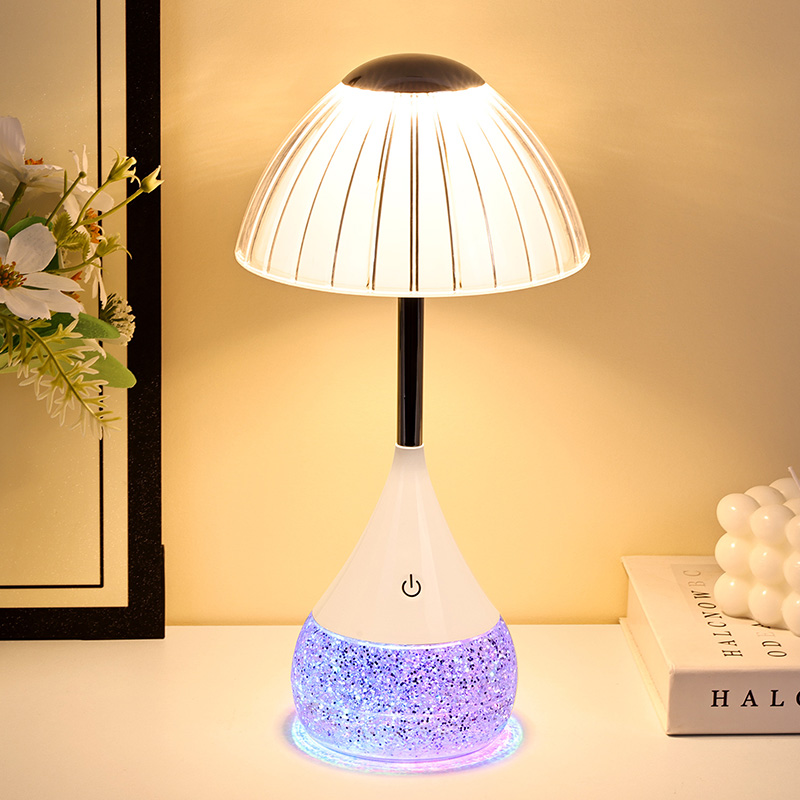 2. ຂອງແຫຼວແລະ glitter: ພື້ນຖານແມ່ນເຕັມໄປດ້ວຍຂອງແຫຼວແລະ glitter ພາຍໃນ. ເມື່ອໂຄມໄຟຕັ້ງໂຕະເປີດຢູ່, ແສງຈະສ່ອງຜ່ານແກ້ວໃສ່ຂອງແຫຼວ ແລະ ເງົາ, ສ້າງຜົນກະທົບທີ່ກະພິບ ແລະ ໄຫຼ, ເພີ່ມຄວາມສົນໃຈທາງສາຍຕາ.