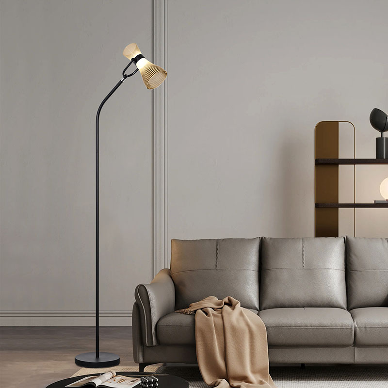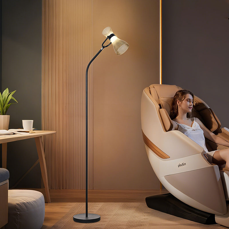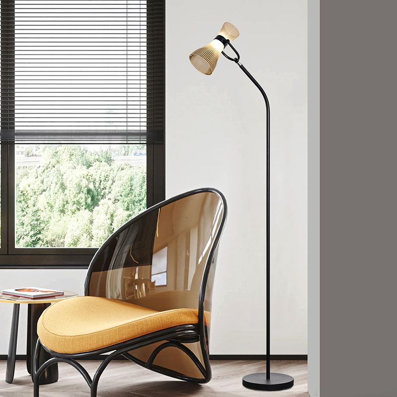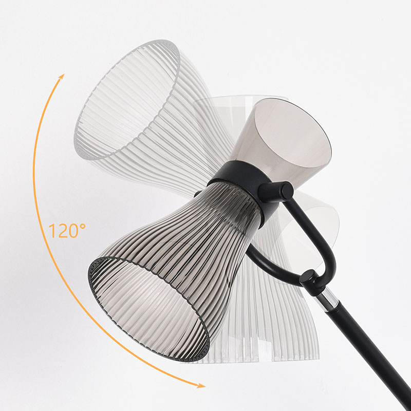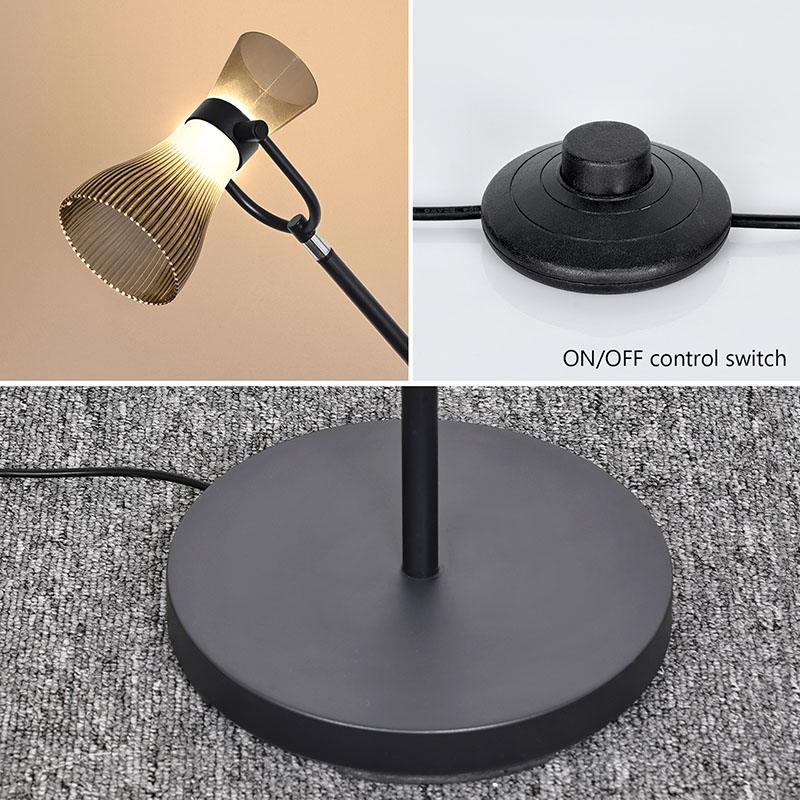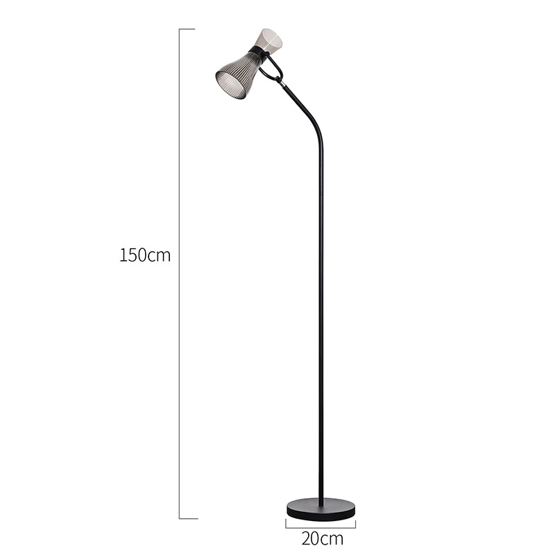 ສະຫຼັບຫຼຸດແສງຕີນໂຄມໄຟຊັ້ນນໍາທີ່ທັນສະໄຫມທີ່ມີຮົ່ມແກ້ວຮັບຮອງເອົາແນວຄວາມຄິດການອອກແບບຫນ້ອຍ, ດ້ວຍຮູບຮ່າງລວມທີ່ງ່າຍດາຍແຕ່ stylish. ຄວາມສູງຂອງ 150 ຊັງຕີແມັດແລະເສັ້ນຜ່າກາງຖານຂອງ 20 ຊັງຕີແມັດໃຫ້ມັນພຽງພໍໂດຍບໍ່ມີການກິນພື້ນທີ່ຫຼາຍ. ແທ່ງ ແລະ ໂຄນຂອງໂລຫະໄດ້ຮັບການຂັດລະອຽດ, ມີພື້ນຜິວລຽບ ແລະ ລະອຽດອ່ອນ,