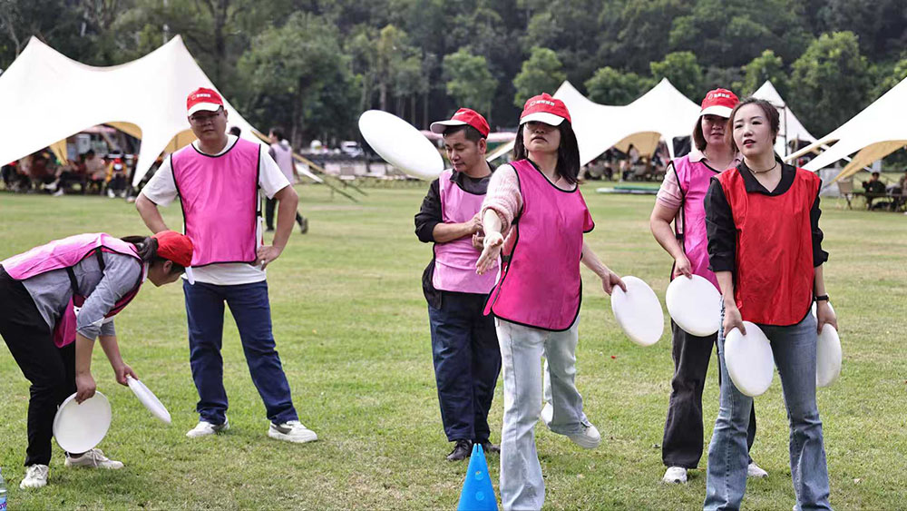 Projects five: Frisbee Nine Palace Grid 🥏 Rule: Throw frisbee from 3 meters away, shoot down the Nine Grid Plate and score 3 chances per person. ສະສົມຄະແນນສູງເພື່ອຊະນະ. ເວລາ: 20 ນາທີ. ຈຸດເດັ່ນ: ຄວາມຊັດເຈນທຽບກັບການແຂ່ງຂັນໂຊກ!