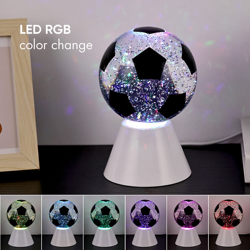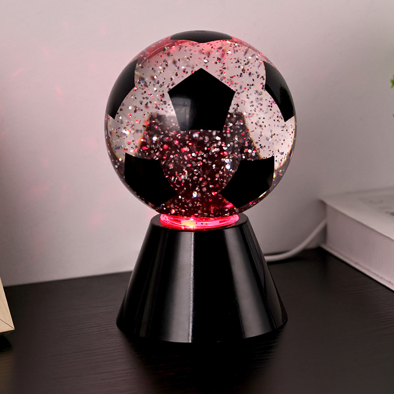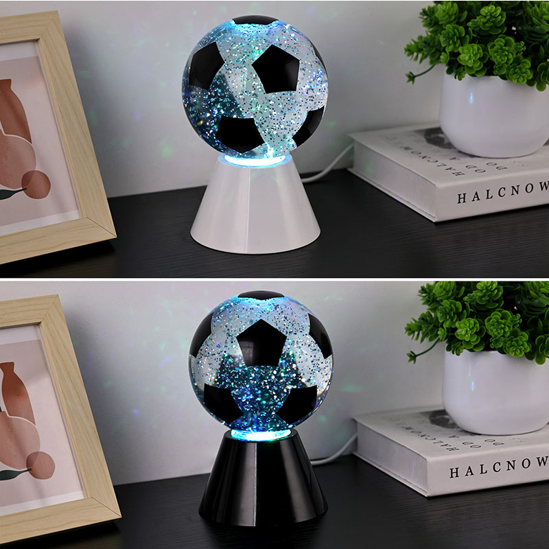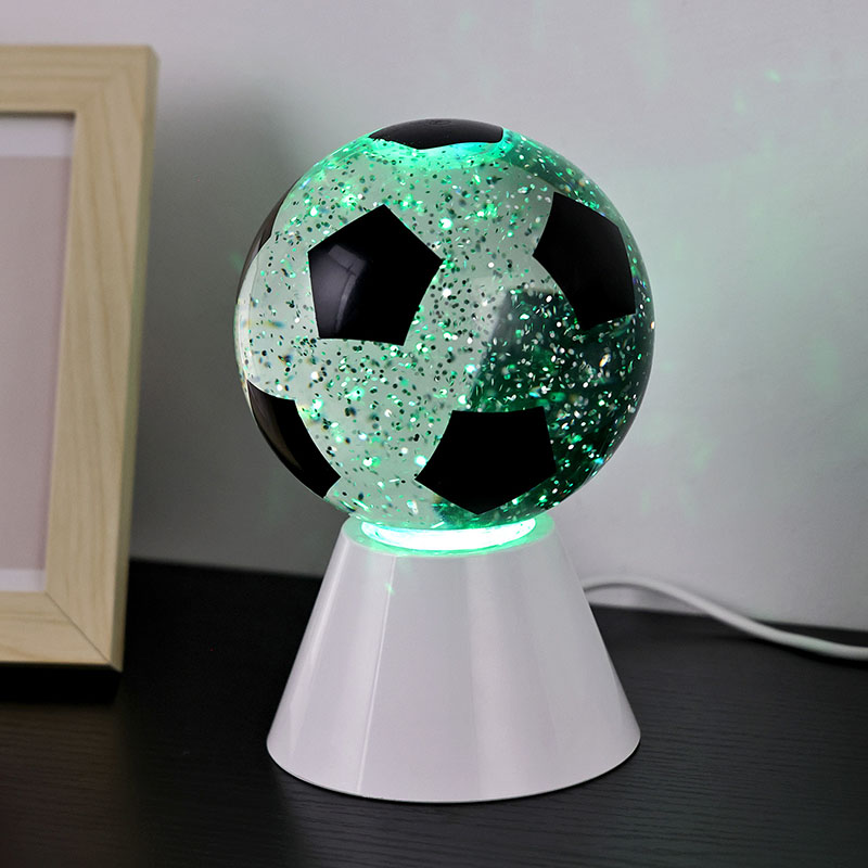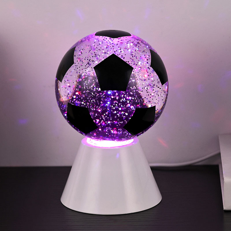 ສີຂາວ + LED ປ່ຽນສີແສງສະຫວ່າງຂອງປະທານ spherical ແມ່ນປະກອບດ້ວຍແກ້ວດ້ານເທິງແລະຖານພລາສຕິກ. ພື້ນຜິວແກ້ວແມ່ນພິມດ້ວຍຮູບແບບບານເຕະ, ເຊິ່ງສາມາດພິມອອກເປັນສີຕ່າງໆ. ຄຸນນະສົມບັດຕົ້ນຕໍຂອງແສງສະຫວ່າງໃນຕອນກາງຄືນທີ່ມີຮົ່ມບານເຕະແມ່ນວ່າມີນ້ໍາພາຍໃນຜ່ານ, ເຊິ່ງປະກອບດ້ວຍ sequins. ຫຼັງຈາກສະວິດເປີດ, ມໍເຕີຂະຫນາດນ້ອຍໃນຕົວຈະເລີ່ມເຮັດວຽກ, ແລະຂອງແຫຼວພາຍໃນແກ້ວຈະເຄື່ອນຍ້າຍບໍ່ສະຫມໍ່າສະເຫມີ. ໃນຂະນະດຽວກັນ, ແສງດ້ານລຸ່ມຂອງແສງກາງຄືນທີ່ມີຮົ່ມບານເຕະເລີ່ມມີການປ່ຽນແປງ, ເຊິ່ງແມ່ນງາມຫຼາຍ. ແສງສະຫວ່າງກາງຄືນທີ່ມີຮົ່ມບານເຕະສ່ວນໃຫຍ່ແມ່ນໃຊ້ສໍາລັບການຕົກແຕ່ງພາຍໃນ, ໃນຫ້ອງ, ຫ້ອງຮັບແຂກ, ຫ້ອງໂຮງແຮມ, ແລະສະຖານທີ່ອື່ນໆ, ຜະລິດຕະພັນຍັງມາພ້ອມກັບການສາກໄຟ USB ແລະສາມາດນໍາໃຊ້ຫມໍ້ໄຟ 3AAA.