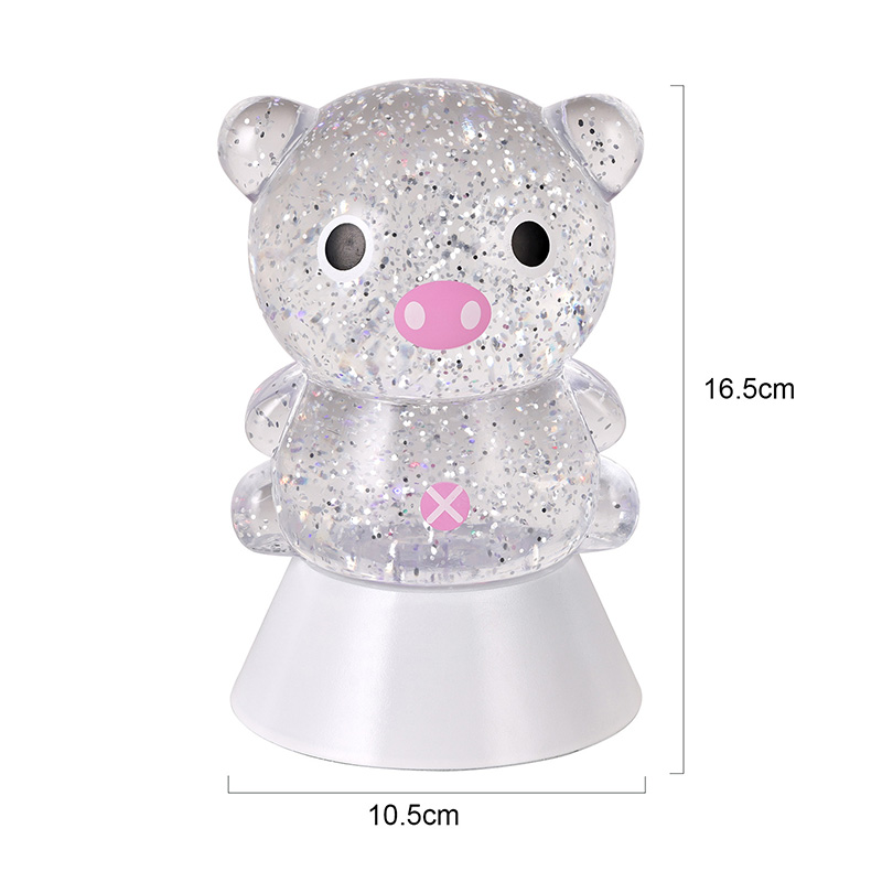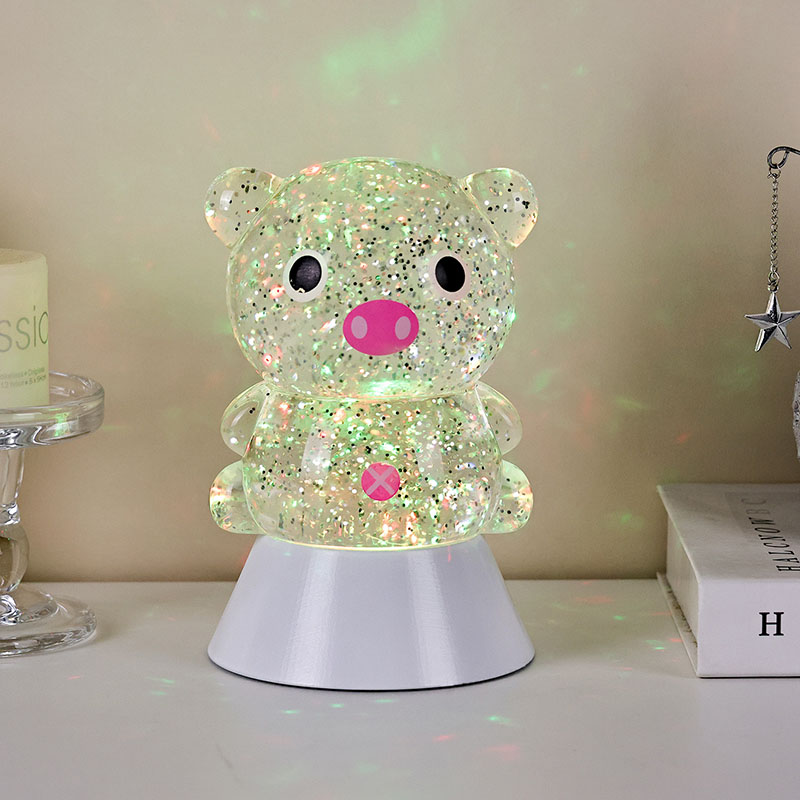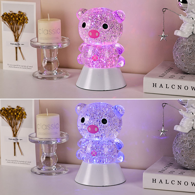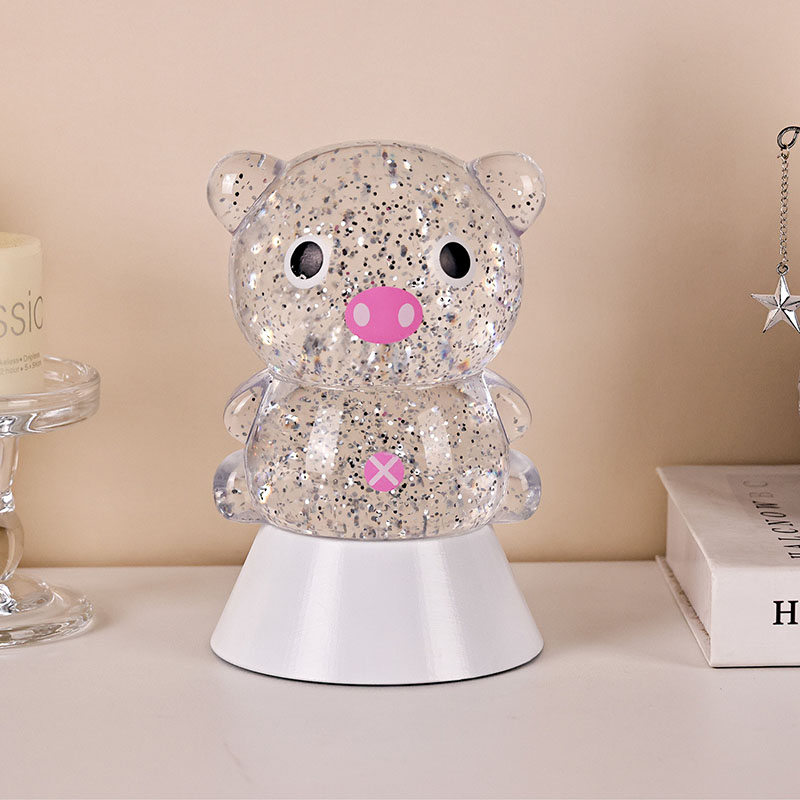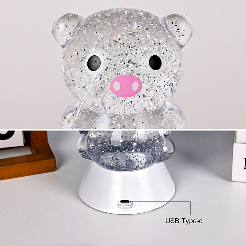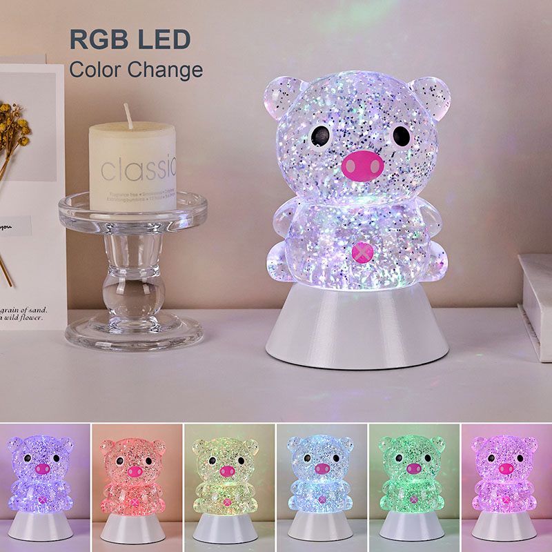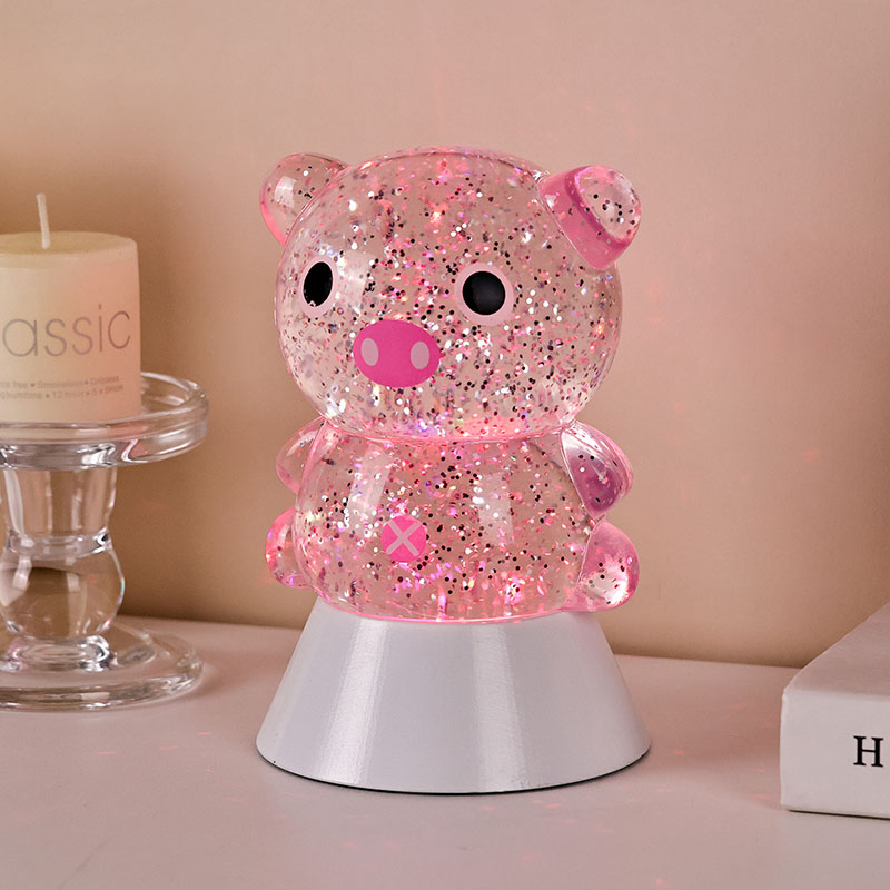ພາດສະຕິກ & ເອເລັກໂຕຣນິກໃນຕອນກາງຄືນທີ່ສະດວກສະບາຍ, ແສງກາງຄືນທີ່ງົດງາມແລະມະຫັດສະຈັນສາມາດນໍາເອົາຄວາມອົບອຸ່ນແລະຈິນຕະນາການທີ່ບໍ່ມີທີ່ສິ້ນສຸດມາສູ່ຫ້ອງຂອງເດັກ. ແສງຕາເວັນຕົກແຕ່ງຮູບຊົງ "Dreamy Pig" ນີ້, ໄດ້ແຮງບັນດານໃຈຈາກການອອກແບບກາຕູນໝູທີ່ໜ້າຮັກ, ປະສົມປະສານເທັກໂນໂລຍີການປ່ຽນຂອງແຫຼວແບບເຄື່ອນໄຫວທີ່ມີຜົນກະທົບເປັນປະກາຍເພື່ອສ້າງເປັນຜະລິດຕະພັນໄຟໃນເຮືອນທີ່ສ້າງສັນທີ່ປະສົມປະສານຄວາມມ່ວນ, ຄວາມສວຍງາມ, ແລະການປະຕິບັດຕົວຈິງ. ມັນເປັນທາງເລືອກທີ່ເຫມາະສົມສໍາລັບຫ້ອງເດັກນ້ອຍ, ຫ້ອງນອນ, ໂຕະ, ຫຼືເປັນຂອງຂວັນວັນພັກ.