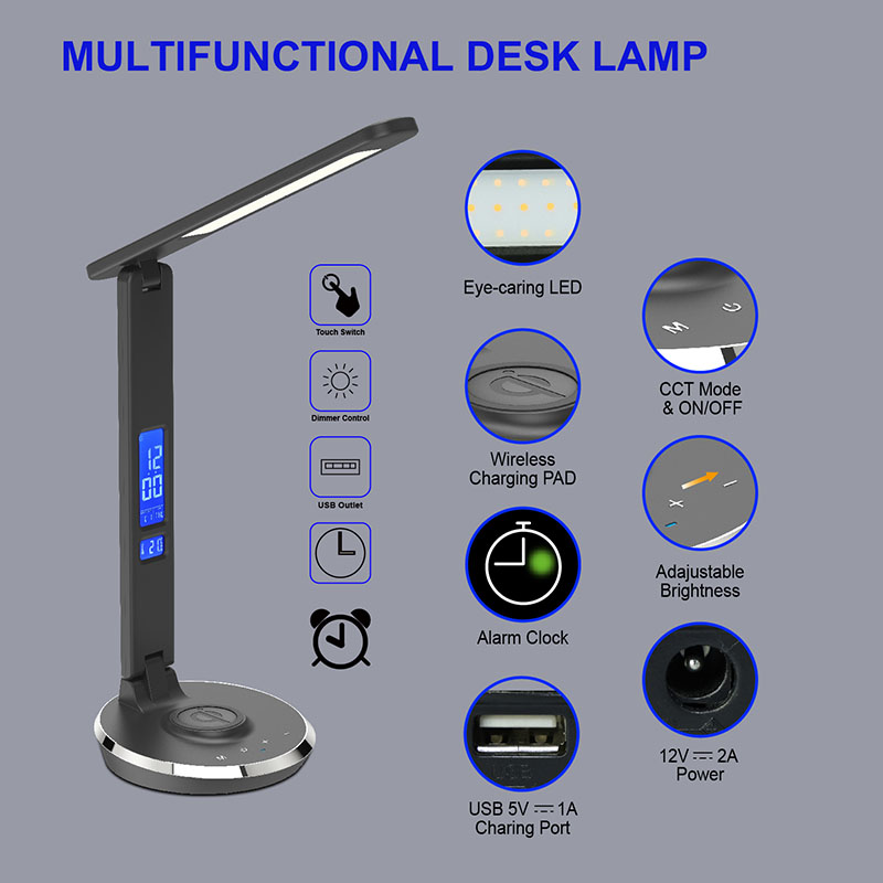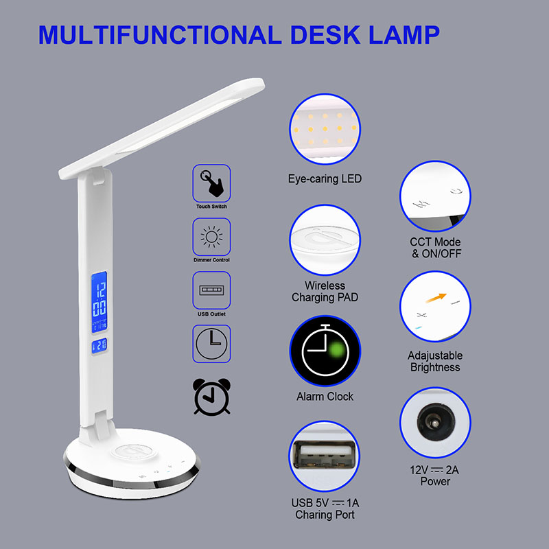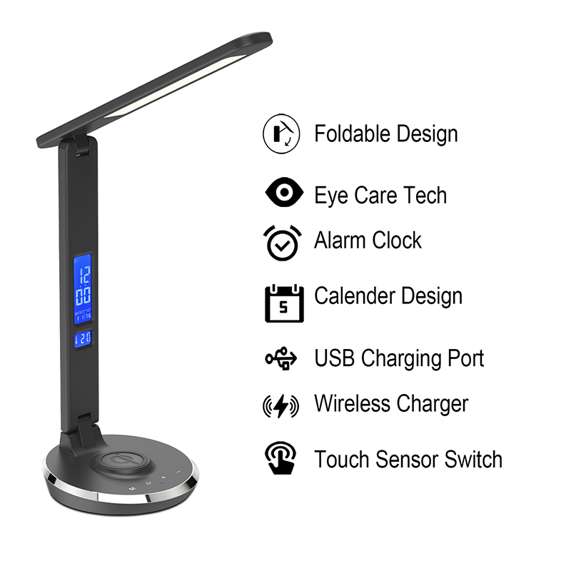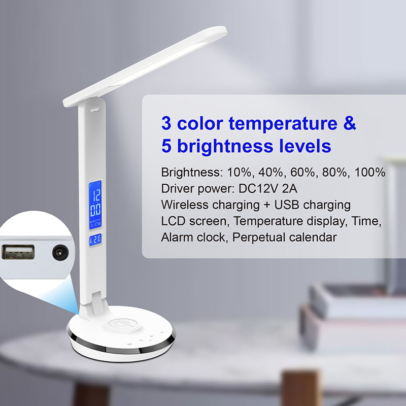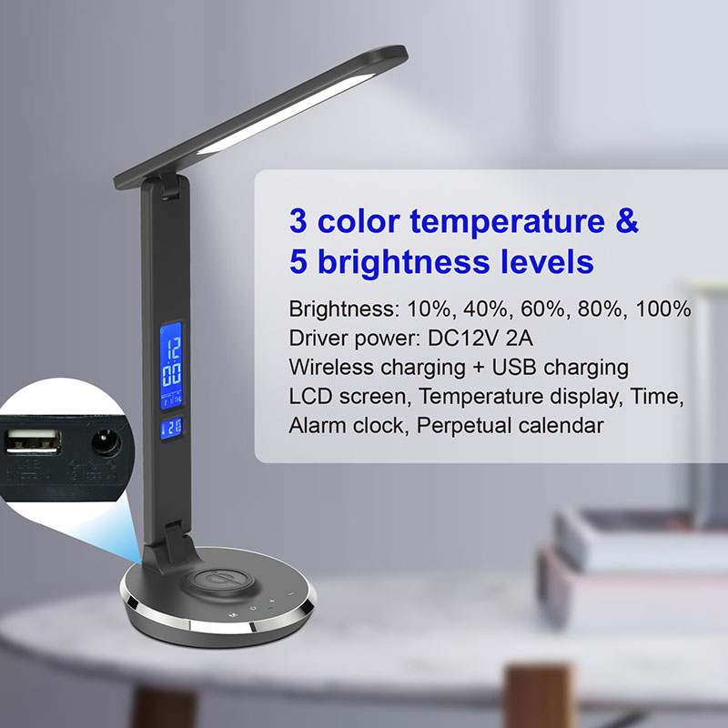 ໂຄມໄຟ desk qi led ກັບເຄື່ອງສາກໄຟໄຮ້ສາຍ
