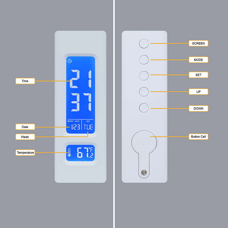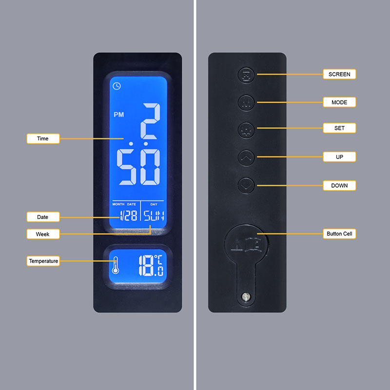 ນອກເຫນືອຈາກຄວາມສາມາດໃນການເຮັດໃຫ້ມີແສງທີ່ຫນ້າປະທັບໃຈຂອງມັນ, ໂຄມໄຟ LED ... ໂຄມໄຟທີ່ຕິດຕັ້ງດ້ວຍຫນ້າຈໍ LED ທີ່ສະແດງອຸນຫະພູມໃນປະຈຸບັນແລະໂມງປຸກ. ເວົ້າວ່າ goodbye ກັບ fumbling ກັບອຸປະກອນແຍກຕ່າງຫາກ; ດ້ວຍໂຄມໄຟນີ້, ທ່ານມີຂໍ້ມູນທີ່ສໍາຄັນທັງຫມົດໃນສາຍຕາ. ທີ່ດີເລີດສໍາລັບການຕິດຕາມເວລາແລະການປັບຕົວເຂົ້າກັບອຸນຫະພູມໃນຫ້ອງປ່ຽນແປງຢ່າງຈິງຈັງ.