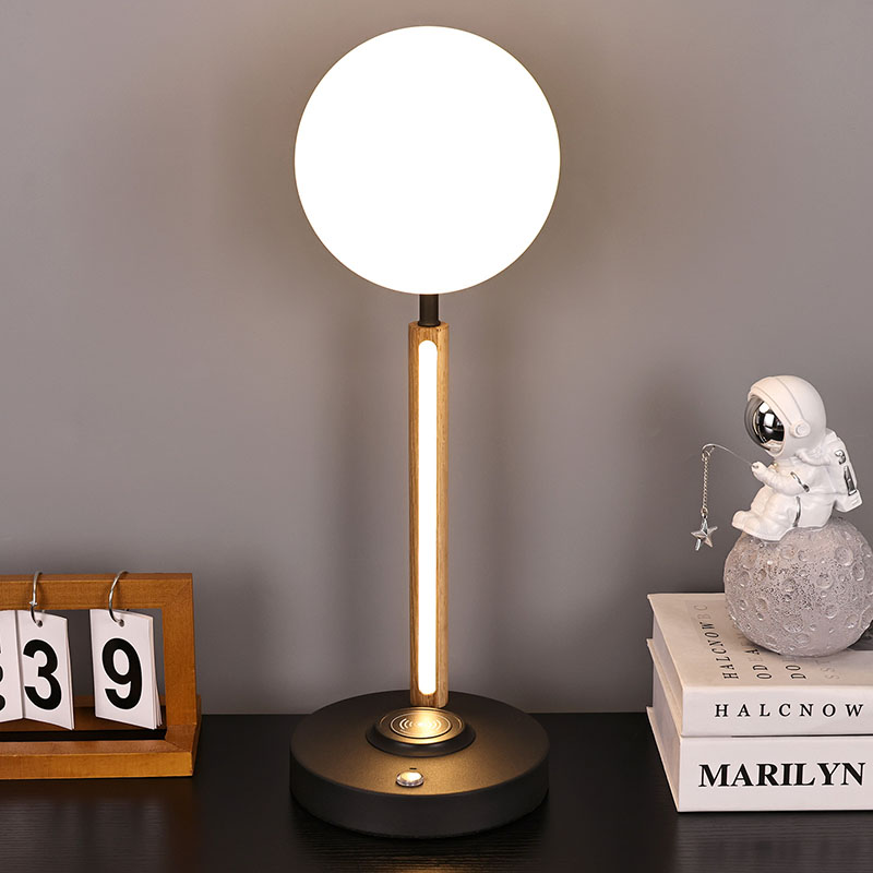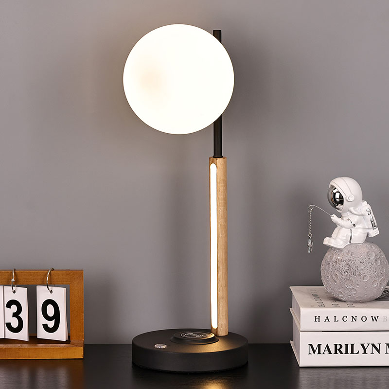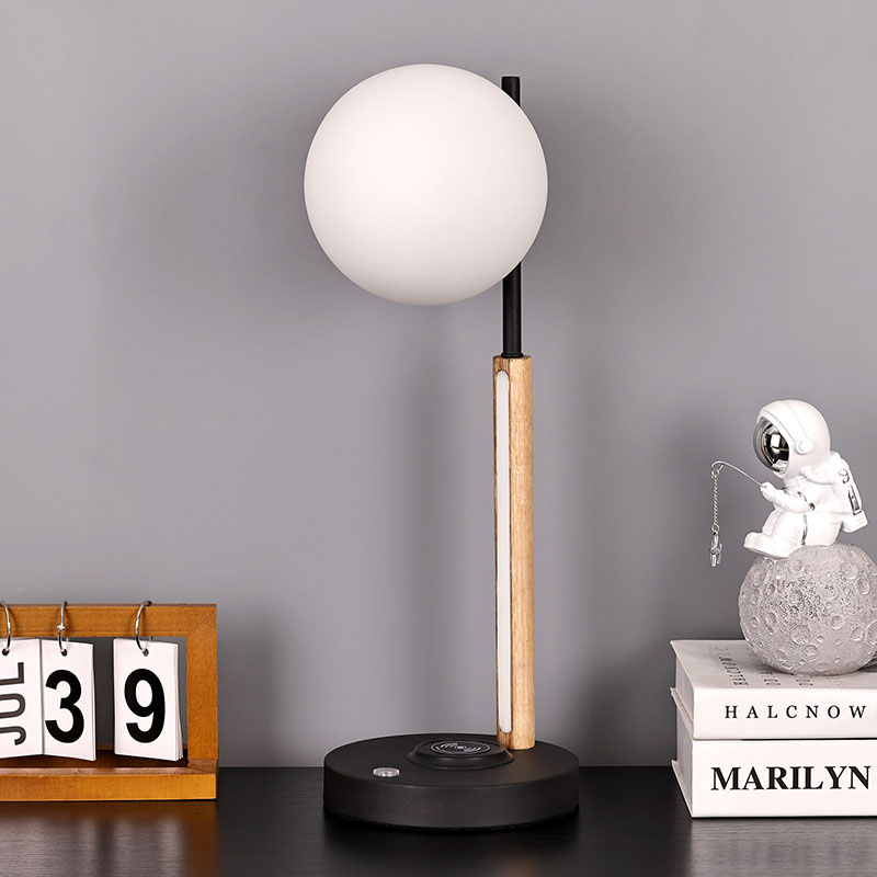 lampshade ແກ້ວ spherical ແລະໂຄມໄຟທີ່ເຮັດດ້ວຍໄມ້ໃນຕົວຂອງໂຄມໄຟ desk ຂະຫນາດນ້ອຍບໍ່ພຽງແຕ່ເປັນເຄື່ອງມືເຮັດໃຫ້ມີແສງປະຕິບັດໄດ້, ແຕ່ຍັງເປັນການຕົບແຕ່ງ exquisite. ມັນສາມາດຖືກວາງໄວ້ໃນແຈຂອງຫ້ອງຮັບແຂກ, ເພີ່ມບັນຍາກາດທີ່ທັນສະໄຫມແລະສິລະປະກັບພື້ນທີ່ທັງຫມົດ; ສາມາດວາງໄວ້ຂ້າງໂຕະຂ້າງຕຽງໃນຫ້ອງນອນ, ພ້ອມກັບທ່ານຜ່ານທຸກໆຄືນທີ່ສະຫງົບສຸກ; ມັນຍັງສາມາດຖືກວາງໄວ້ຂ້າງໂຕະໃນການສຶກສາ, ໃຫ້ທ່ານມີແສງສະຫວ່າງເຮັດວຽກທີ່ພຽງພໍແລະອ່ອນໂຍນ.