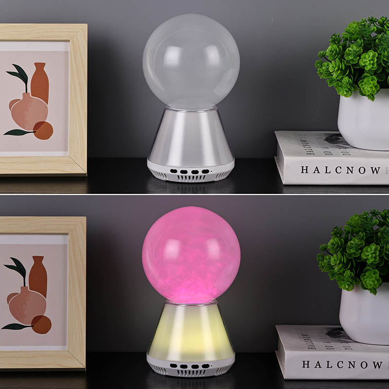 ໂຄມໄຟ LED Glitter RGB ທີ່ມີການຄວບຄຸມ bluetooth ທີ່ປະສົມປະສານການໄຫຼຂອງຂອງແຫຼວໃນລູກແກ້ວເຂົ້າໄປໃນເມຄຄ້າຍຄືສະຖານະ, ການປ່ຽນສີ synchronized ລະຫວ່າງຖານແລະຂອງແຫຼວ, ແລະການເຊື່ອມຕໍ່ Bluetooth ເພື່ອຫຼິ້ນດົນຕີ, ຖືກອອກແບບມາເພື່ອສ້າງໂລກຝັນສໍາລັບທ່ານ. ໂຄມໄຟ LED RGB glitter ທີ່ມີການຄວບຄຸມ bluetooth ບໍ່ພຽງແຕ່ເປັນແສງສະຫວ່າງໃນຕອນກາງຄືນປະຕິບັດ, ແຕ່ຍັງເປັນສິລະປະ magical.