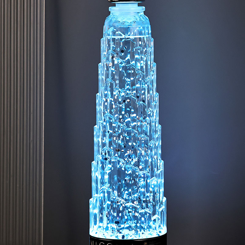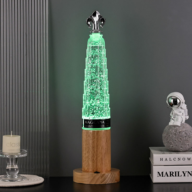 Glitter, ຂັບເຄື່ອນໂດຍມໍເຕີຂະຫນາດນ້ອຍ, ເຮັດໃຫ້ຂອງແຫຼວເຄື່ອນຍ້າຍບໍ່ສະຫມໍ່າສະເຫມີ, ຖອກລົງລົງຄືກັບນ້ໍາຕົກ, ສ້າງຜົນກະທົບທາງດ້ານສາຍຕາ.