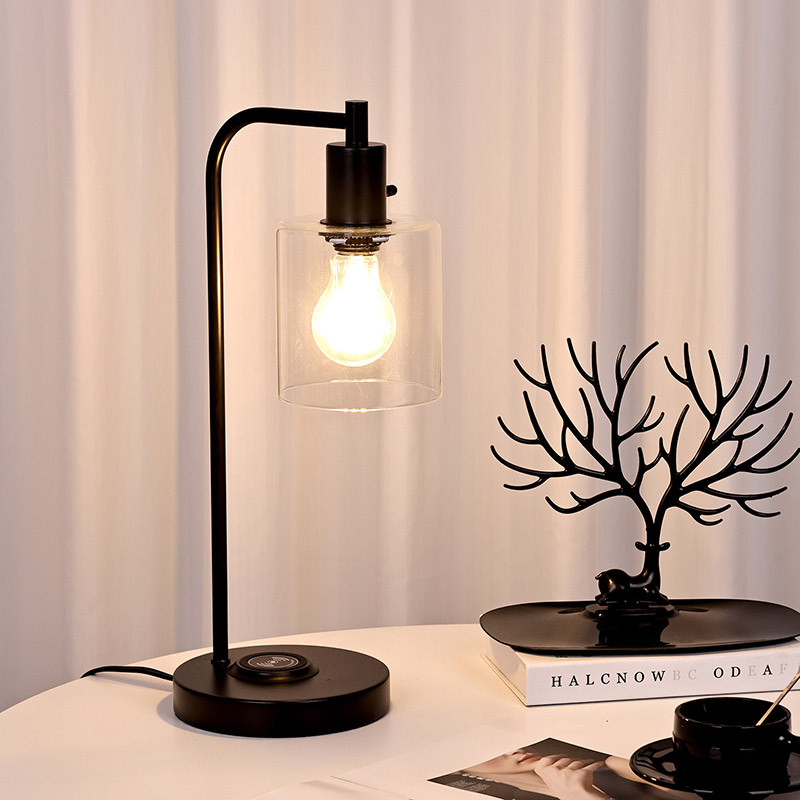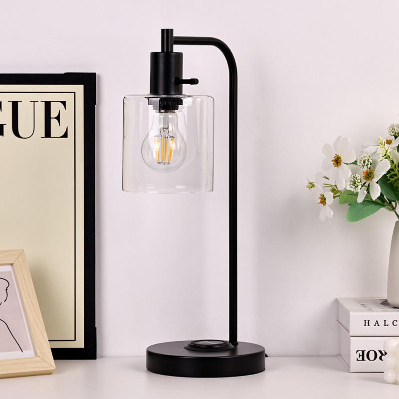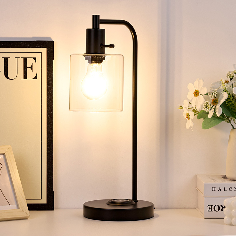 ໂຄມໄຟຕາຕະລາງ E26 E27 ທີ່ມີຮົ່ມແກ້ວສາມາດສາກໂທລະສັບໄດ້ດ້ວຍເຄື່ອງສາກໄຮ້ສາຍ