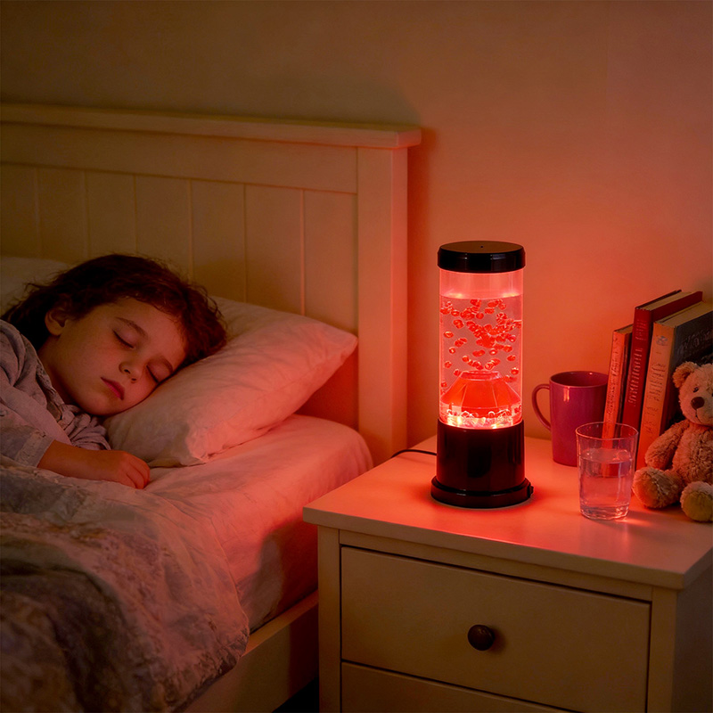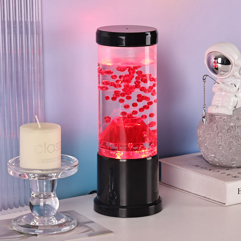 ຊິ້ນສ່ວນກາງຂອງແສງກາງຄືນເປັນຖັນໂປ່ງໃສທີ່ຄ້າຍກັບຂຸມພູເຂົາໄຟ. ພາຍໃນຖັນນີ້, ເຈົ້າຈະພົບເຫັນຮູບຊົງກົມສີແດງທີ່ມີຊີວິດຊີວາ, ເຊິ່ງເຮັດໃຫ້ລະນຶກເຖິງ lava molten ທີ່ໄຫຼຢູ່ໃນເປືອກໂລກ. ວົງມົນເຫຼົ່ານີ້ລອຍຢູ່ພາຍໃນຂອງແຫຼວທີ່ຈະແຈ້ງ, ສ້າງຜົນກະທົບທາງສາຍຕາທີ່ມີການເຄື່ອນໄຫວ ແລະປ່ຽນແປງຕະຫຼອດໄປ. ເມື່ອແສງສະຫວ່າງສ່ອງຜ່ານ, ມັນເຮັດໃຫ້ມີແສງທີ່ອົບອຸ່ນແລະດຶງດູດ, ເຫມາະສໍາລັບການສ້າງບັນຍາກາດທີ່ສະດວກສະບາຍໃນຫ້ອງໃດກໍ່ຕາມ.